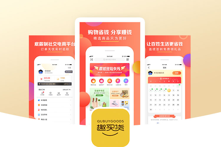 趣卖货是一个涵盖生活刚需品的新零售商场,同时也是一个分享型社交电商平台,任何人都可以无门槛销售商城的产品,一键分享后消费者购买并确认收货,可获得产品销售利润,同时所有产品支持七天无理由退换。